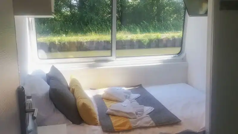 The upper deck features a stylish restaurant serving refined French cuisine, a cozy lounge bar, and a jacuzzi for moments of pure relaxation. On the sun deck, comfortable loungers invite you to unwind while admiring the tranquil canal landscapes.