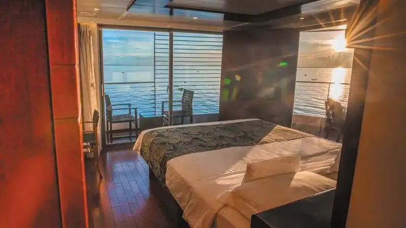 Built in 2017, this elegant 65-meter vessel combines colonial charm with modern comfort, accommodating up to 62 guests in 31 spacious cabins, each featuring a private balcony and full modern amenities.
