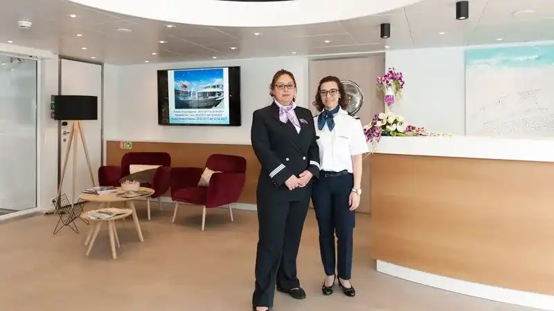 The ship’s three decks house a variety of modern cabins, including those with French balconies on the Middle and Upper Decks, allowing guests to enjoy the fresh air and scenic beauty right from their rooms. On the Sun Deck, a refreshing swimming pool and comfortable loungers await, ideal for soaking up the sunshine and savoring the tranquil rhythm of the river.