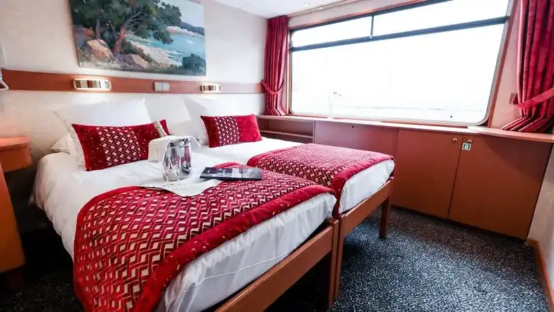 This intimate standard ship measures 110 meters in length and 11.4 meters in width. It accommodates up to 138 guests in 69 cabins, spread over two decks. Each cabin is designed for relaxation, offering modern amenities and the comforts of home.