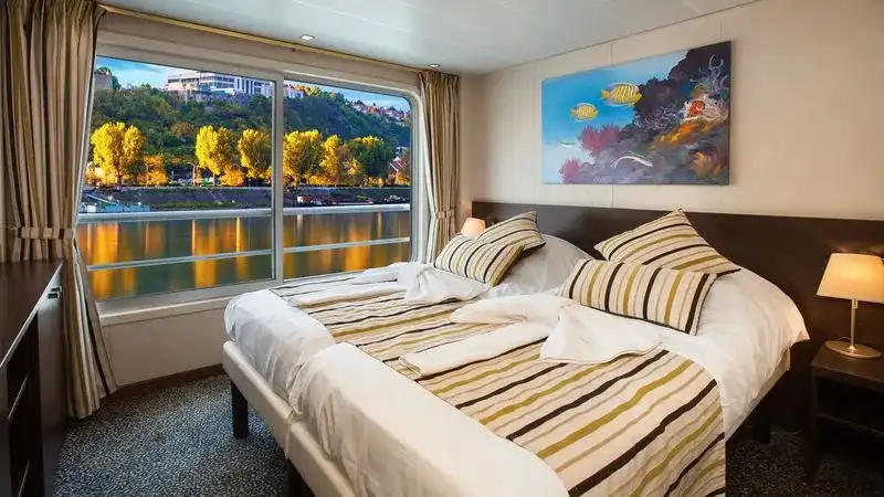 This Premium ship measures 110 meters long and 11.4 meters wide, accommodating up to 176 passengers in 88 comfortable cabins spread across three decks. Each cabin, sized between 9 m² and 13 m², provides all modern amenities to ensure a relaxing stay.