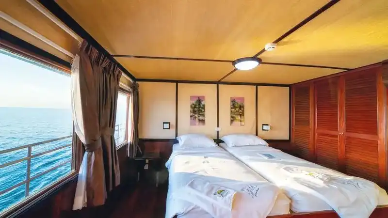 This boutique colonial-style ship measures 51 meters long and 11 meters wide, accommodating just 48 guests in 24 elegant cabins spread over two decks. Each cabin combines charm, comfort, and modern amenities to ensure a relaxing stay.